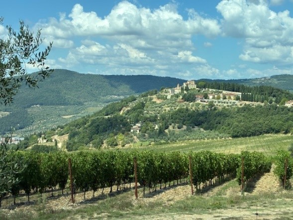 collines et châteaux historiques parsemés de belles allées de cyprès ;